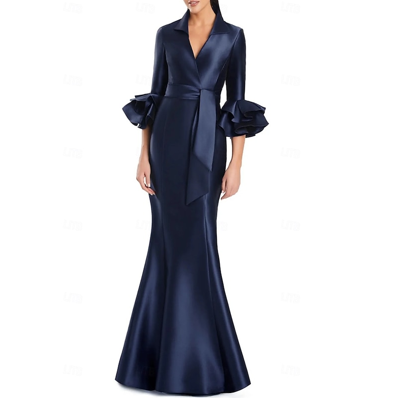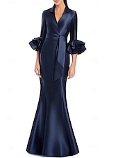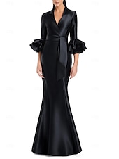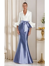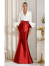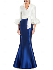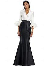 More information about Black and White Mermaid / Trumpet Cocktail Dresses Elegant Gown Formal Wedding Floor Length Long Sleeve Shirt Collar Satin with Bow(s)