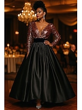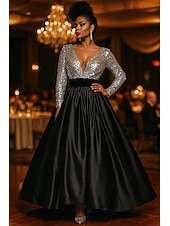 More information about Black Tie A-Line Evening Gown Cocktail Dresses Sparkle Stretch Sequin Formal Gown Wedding Floor Length Long Sleeve Plunge Neckline Satin with Ruched