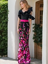 Why Choose Mermaid / TrumpetBlack Evening Gown Elegant Dress Semi Formal Wedding Floor Length Sleeveless One Shoulder Satin with Ruffles Floral Embroidered Lace?