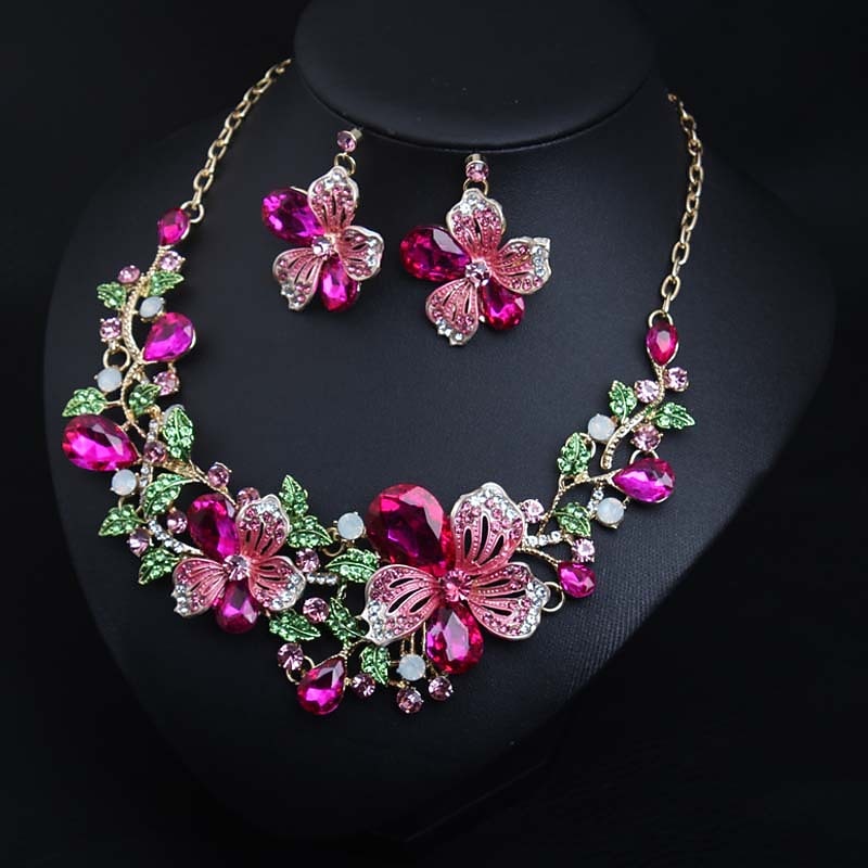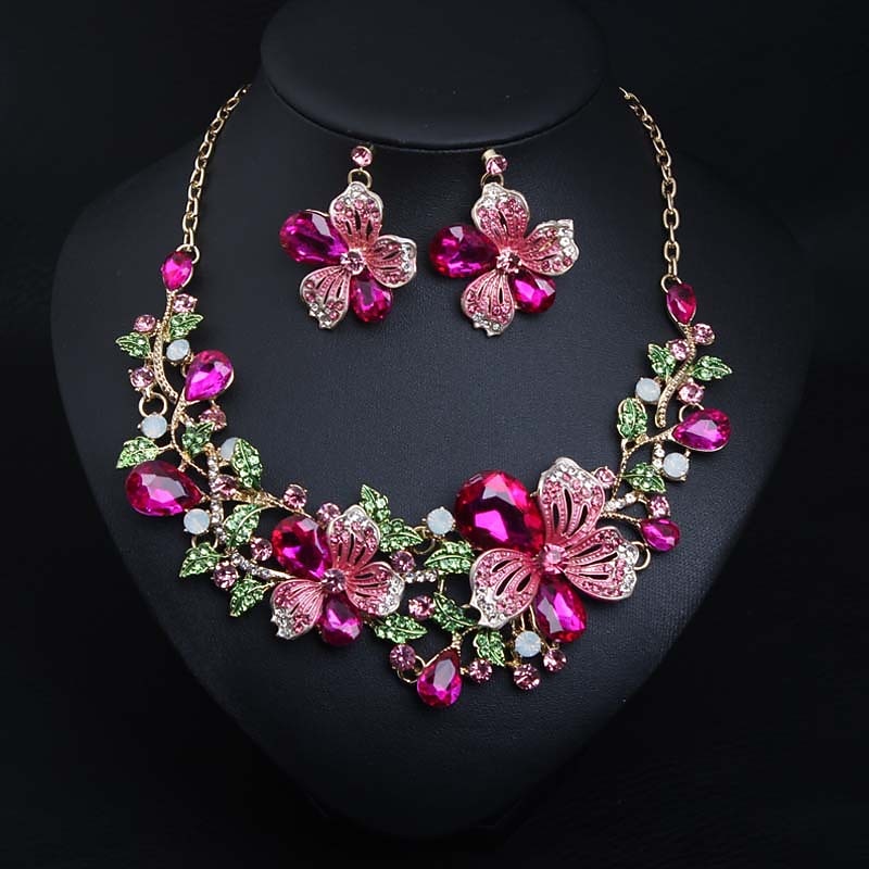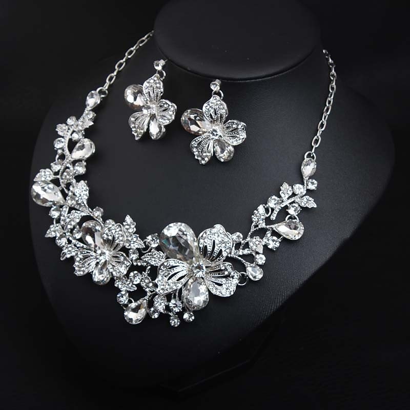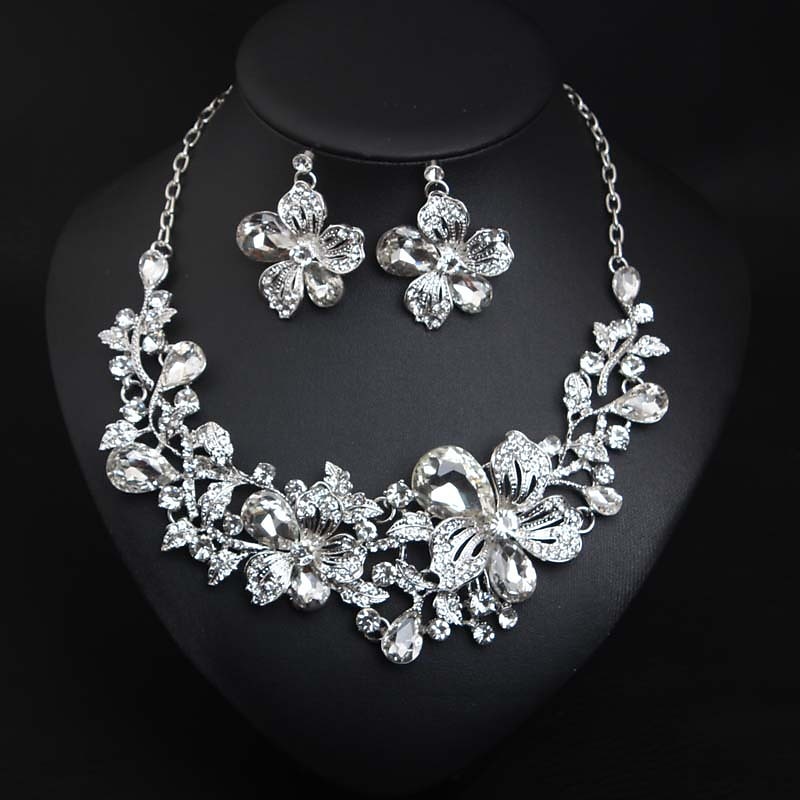 More information about Fall Wedding Bridal Jewelry Sets Two-piece Suit Cubic Zirconia Rhinestone Alloy 1 Necklace Earrings Women's Statement European iconic Flower Shape irregular Jewelry Set For Party Wedding