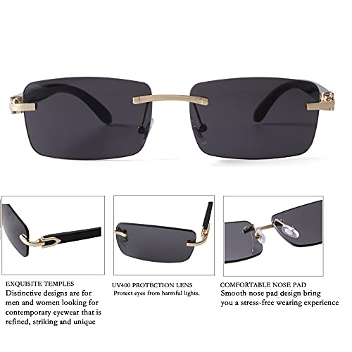 SDINM Fashion Rectangle Rimless Sunglasses for Men Women Frameless Tinted Lens Sun Glasses Shades