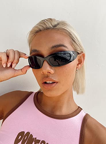 Wrap Round Sunglasses Y2K Trendy, Fashion Black Sport Shades Moon Décor… 6