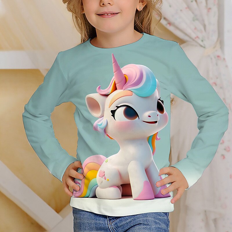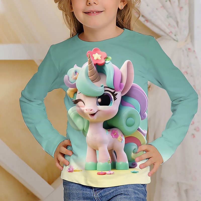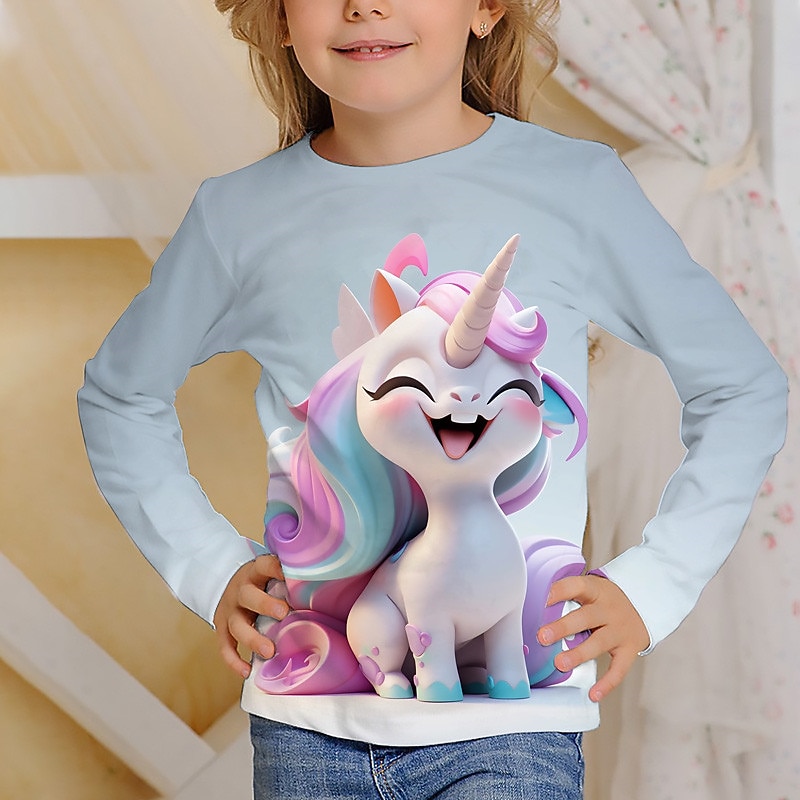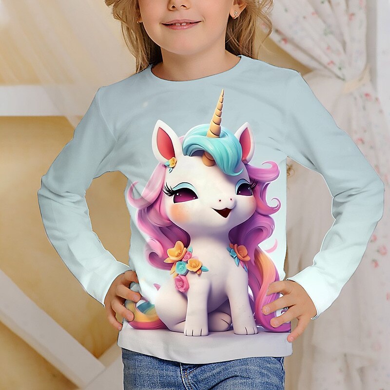 Why Choose Girls' 3D Graphic Cartoon Unicorn T shirt Tee Long Sleeve 3D Print Summer Fall Active Fashion Cute Kids 3-12 Years Outdoor Casual Daily Regular Fit?