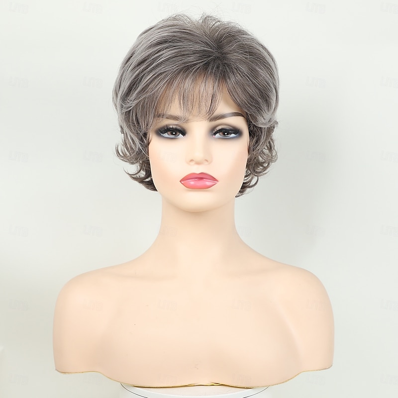 $20.99 - Grey Curly Pixie Wigs for White Women Short Fluffy White Hair with Bangs Natural Synthetic Heat Resistant Wig 2025. Shop for cheap Older Wigs online? Buy at lightinthebox.com on sale today!