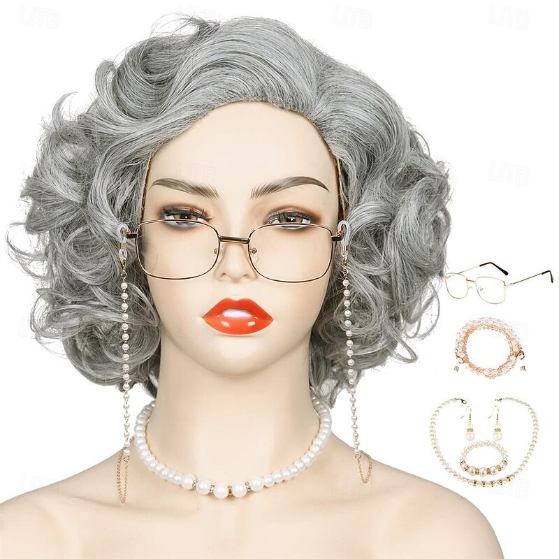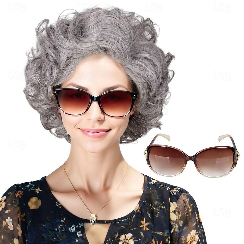 $26.99 - ColorGround Old Lady Granny Silver White Curly Wig 100 Days of School 2025. Shop for cheap Older Wigs online? Buy at lightinthebox.com on sale today!