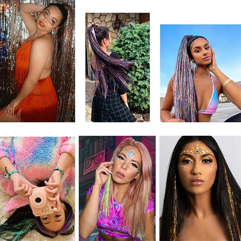 $14.99 - Black Hair Tinsel Kit with Tool 6pcs 1200 Strands Hair Tinsel Heat Resistant Fairy Hair Sparkling Shiny Glitter Tinsel Hair Extensions for Women Girls Kids 47Inch 2025. Shop for cheap Crochet Hair online? Buy at lightinthebox.com on sale today!