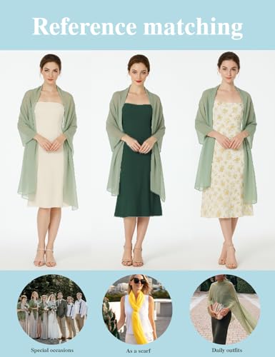Fabric type: 100% PolyesterCare instructions: Hand WashOrigin: ImportedVIBRANT & lovely COLOR ---Available in 30 Colors, color & style representation may vary by monitor.COVER YOUR SHOULDERS & ARMS PERFECTLY --- Length:79, Width:27( Wide to Waist). This shawl is One Size fits all.SOFT& BREATHABLE CHIFFON --- This light and silky chiffon wrap gives you a very elegant look, especially perfect to add to a summer dress to make it looks more formal.NEVER WORRIED ABOUT FOLD MARKS --- You just need hung it up for few days or steam it, all of the wrinkles where it had been folded for shipping will be fallen out of it.PERFECT FOR FORMAL OR EVERYDAY --- This special wrap is ideal for brides, bridesmaids, weddings, bridal, motherβs gift or any formal events. Wear this shawl with your dress, make you get more compliments. Perfect for everyday use. top-grade materials and excellent craftsmanship ensure long-lasting durability.