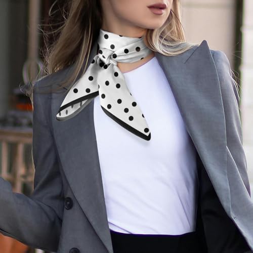 Color: White Black Polka DotsItem Weight: 0.15 PoundsBrand: WIRESTERSize: MediumUnit Count: 1.00 CountPREMIUM MATERIALS: Our fashionable square neck scarves with elegant prints are made of high-quality eco-friendly satin chiffon fabric which is soft, smooth, skin-friendly, sturdy, breathable and very comfortable to contact skin. The nice square neck scarf is about 27.5 x 27.5 inches (70 x 70 cm) that is perfect for most outfits.contemporary DESIGNS: With vibrant colors and simple nice designs, our stylish quality square satin chiffon neck scarves are great fashion accessories that are easy for you to show your exceptional temperament and beauty from many aspects.MULTIPLE WAYS TO WEAR: You can wear this lovely scarf on your hair or head or around your neck. It can also be wrapped around your wrist, hat and handbag, etc.SUITABLE OCCASIONS: The fashionable neck scarf can be used all year round to keep you warm in cold weather and protect you from the sunshine. It is suitable for offices, parties, weddings, shopping, traveling, ceremonies and any important events.AMAZING GIFTS: Our eye-catching stain chiffon neck scarves are ideal and thoughtful gifts for your beloved and special ones in celebration of Wedding Anniversary, Birthday, Halloween, Christmas, New Year, Valentine's Day, Mother's Day, etc.