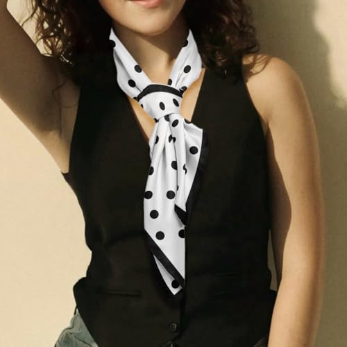 WIRESTER 27.5 Inch Fashion Hair Scarf, Medium Square Satin Head Scarf, Head Scarves, Neckerchief, Hair Bandana, Sleeping Wrap for Women - White Black Polka Dots