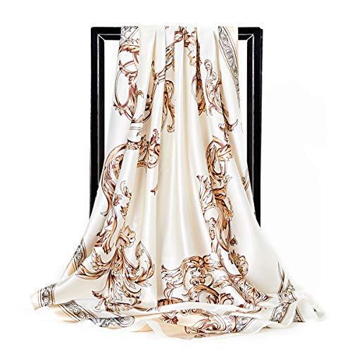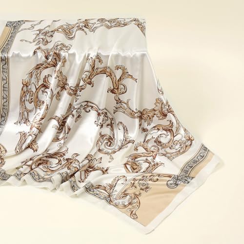 Why Choose Large Square Silk Neck Scarf, fancy Silk Head Scarves for Women 35” Satin Scarf-Beige?
