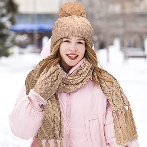 JenPen 6 Pairs Women Ear Muffs and Gloves Set Winter Fleece Lined Beanie Hat Scarf Gloves Ear Muffs Socks