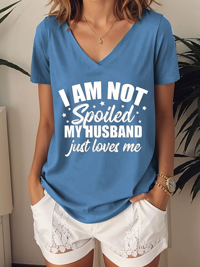 Why Choose Women's T Shirt Graphic Letter chic Casual Short Sleeve V Neck Regular Tops Daily Print Blue Purple Green Summer?