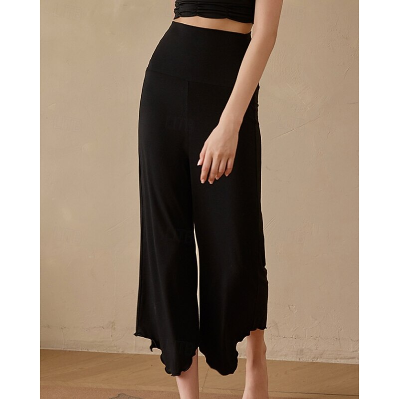 sought-after ! Women's Wide Leg Pants Yoga Pants Cropped Pants High Waist Pilates Fitness Yoga Pants Solid Color Apricot Black Blue Spandex Winter Sports Activewear High Elasticity