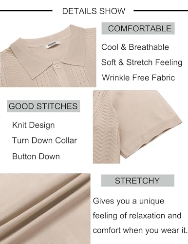 COOFANDY Mens Knit Button Down Shirt Short Sleeve Summer Casual Shirts Vintage Beach Vacation Shirts 5