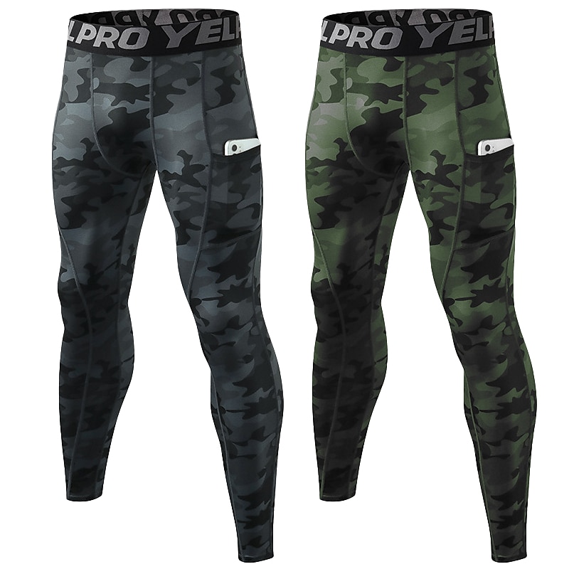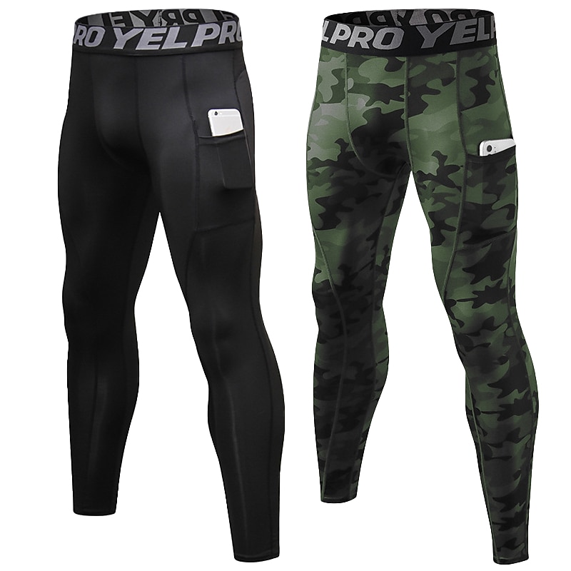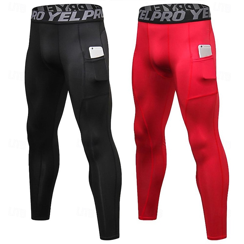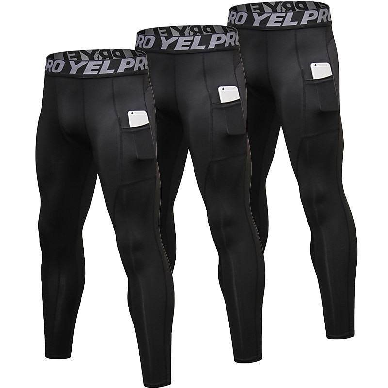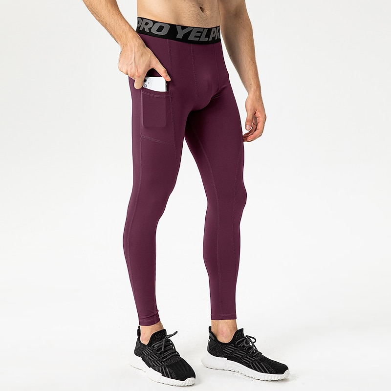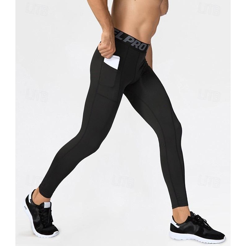 Men's Compression Pants Running Tights Leggings with Phone Pocket Base Layer Athletic Winter Spandex swift Dry Sweat wicking Power Flex Breathable Gym Workout Running Fitness Skinny Sportswear