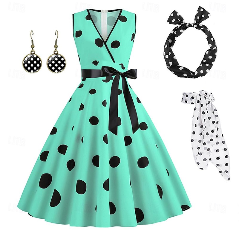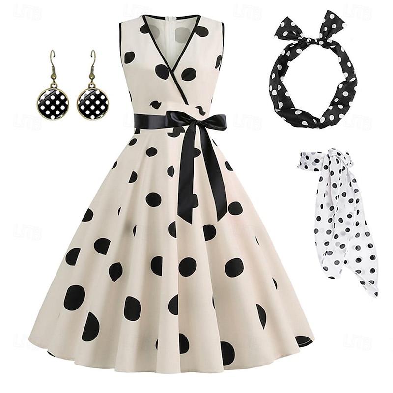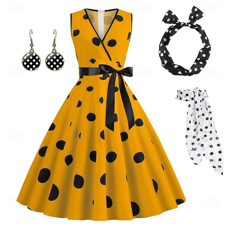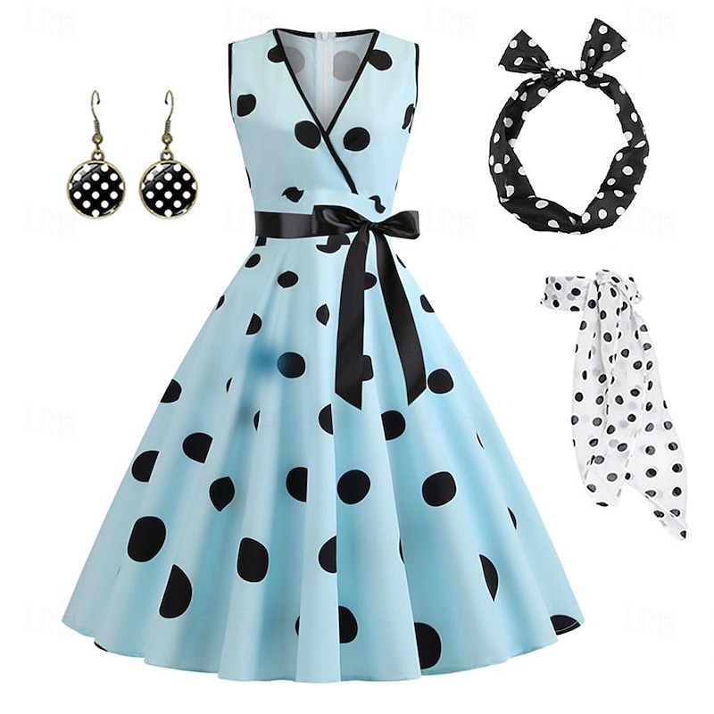 $32.99 - Women's A-Line Rockabilly Dress Polka Dots Swing Dress Flare Dress with Accessories Set 1950s Grease Outfits 60s Retro Vintage with Headband Chiffon Scarf Earrings 2025. Shop for cheap Outfits online? Buy at lightinthebox.com on sale today!