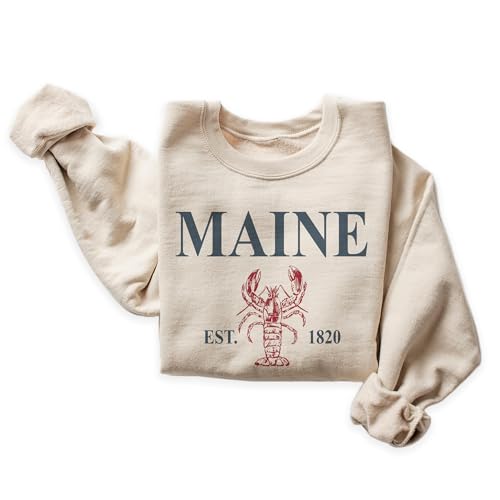 More information about Maine Lobster Sweatshirt, Maine Pullover, Faded Vintage Aesthetic, Trendy Travel Destination Gift For Him or Her, Unisex Crewneck Sweatshirt