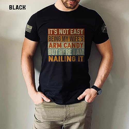 Fabric type: 100% CottonCare instructions: Machine WashOrigin: ImportedClosure type: Pull Onπtraditional T-shirt is one of the main staples for every wardrobe of men or women, teenagers or adults. This basic time is versatile in use and can be mixed with any item.π PREMIUM QUALITY: Our T-shirt is made with high-quality 100% cotton fabric for ultimate comfort. velvety and moisture-wicking, this Classic T-shirt is a perfect fit for the hotter season.βCARE INSTRUCTIONS: Machine wash: warm (max 40C or 105F); Non-chlorine: bleach as needed; Tumble dry: medium; Do not iron; Do not dryclean.It's Not Easy Being My Wife's Arm Candy But Here I Am Nailing Shirt. My wife shirts for men, it's not easy being my wife's arm candy, candy tshirt for women, wife arm candy shirt, husband tshirts from wife. Great funny tee for any married couple men, womenIts Not Easy Being My Wife's Arm Candy Shirt, It's Not Easy Being My Wife's Arm Candy T-shirt, Wife's Arm Candy Tee Shirt, Funny Husband Shirts, Trophy Husband Shirt, My Wife Your Wife Shirt, Wife Arm Candy Shirt, My Wife Shirts For Men, Here I Am Shirt