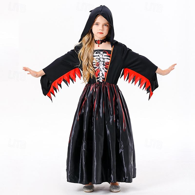 Why Choose Witch Skeleton Skull Ghost Halloween Cape Cosplay Costume Hooded Cloak Walpurgis Night Scary Costume Kid's Girls' Carnival Masquerade Performance Halloween Masquerade accessible Halloween Costumes Dress Up?