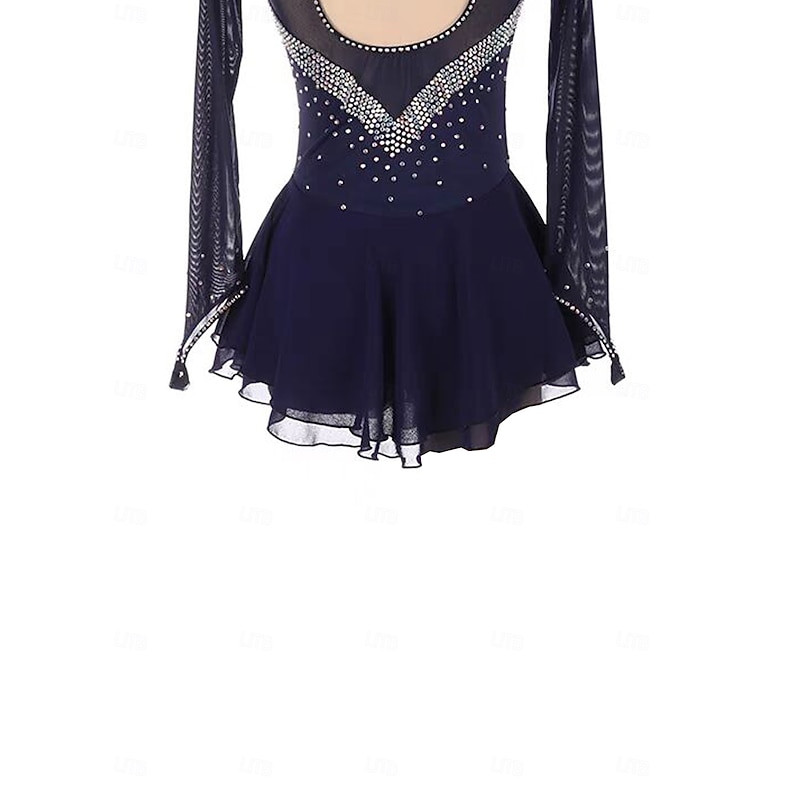 Why Choose Figure Skating Dress Women's Girls' Ice Skating Dress Dark Navy Patchwork Thumbhole Mesh Spandex Stretchy Training Practice Professional Skating Wear Thermal snug Crystal / Rhinestone Long Sleeve Ice?