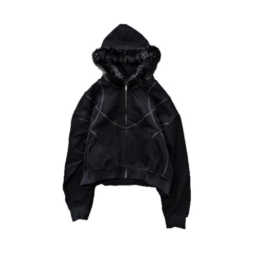 sought-after ! Y2k Zip Up Hoodie Men Hoodie Zip Up Fur Hooded Jacket Grunge snug Winter Coat for Men with Hood Fur Streetwear