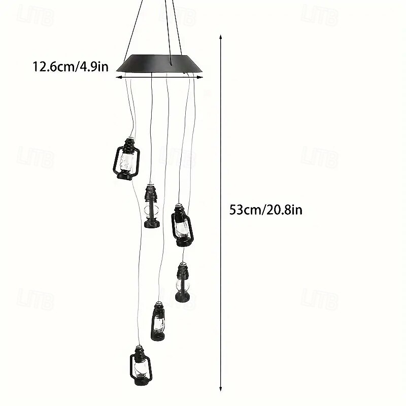 Solar 6 LED Wind Chime Light IP65 Waterproof Hanging Lantern Warm Yellow Glow for Patio, Balcony & Garden Decoration 1