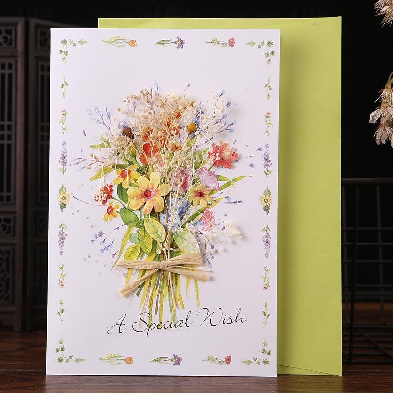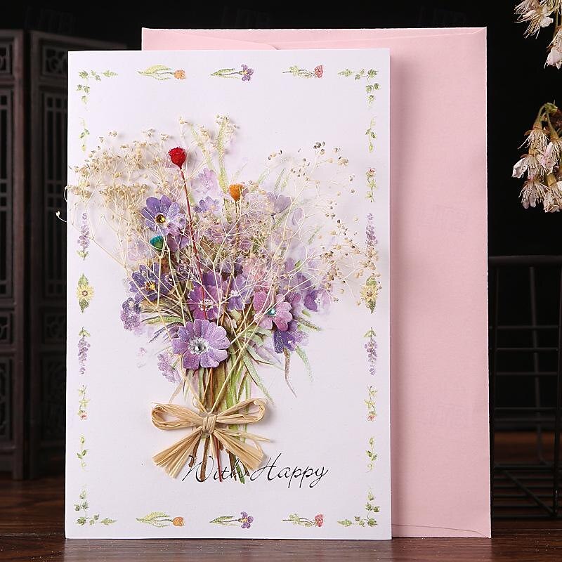 sought-after ! Handmade Dried Flowers Greeting Cards Thank You Card Birthday Party Graduation Wedding Invitation Anniversary Card Flower Bouquet Card for Wife Valentine Mom Day Gift