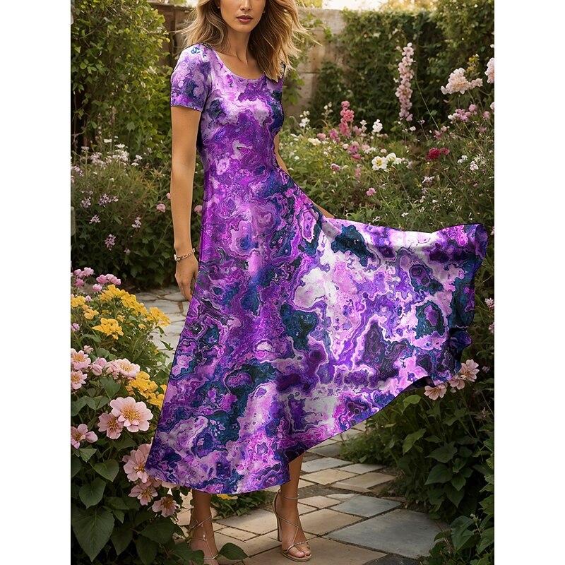 This Women's Maxi Dress Casual Dress A Line Dress Summer Dress Elegant Vacation Casual Regular Fit Graphic Abstract Marble Short Sleeve Square Neck Red Blue Purple Green Summer Spring combines elegant design with practical functionality. Every detail has been carefully considered to ensure you get the premier possible experience. The first-class construction means this product will serve you well for years to come.