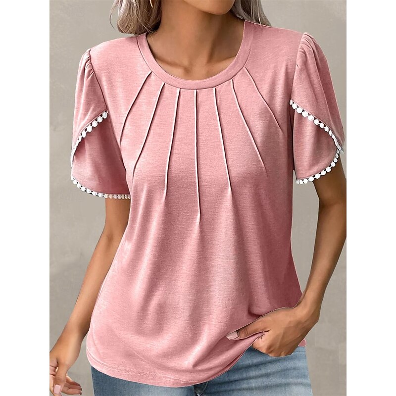 This Women's Blouse Solid Color trendy Casual Short Sleeve Crew Neck Regular Tops Daily White Red Blue Green Khaki Summer Spring combines elegant design with practical functionality. Every detail has been carefully considered to ensure you get the best possible experience. The superior construction means this product will serve you well for years to come.