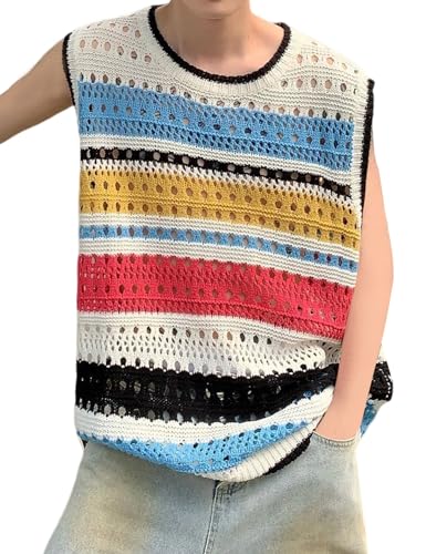 Why Choose Arssm Mens Crochet Sweater Vest Color Block Knit Vest Sleeveless Crewneck Blouses Tops Hollow Out Tank Top?