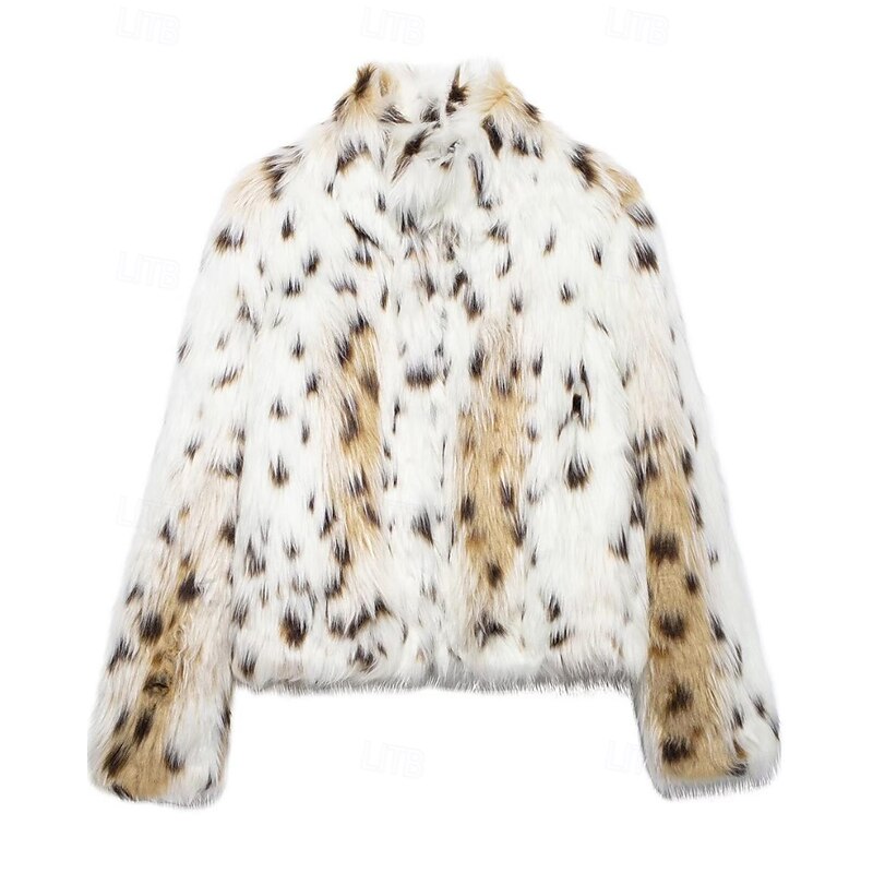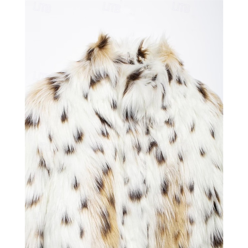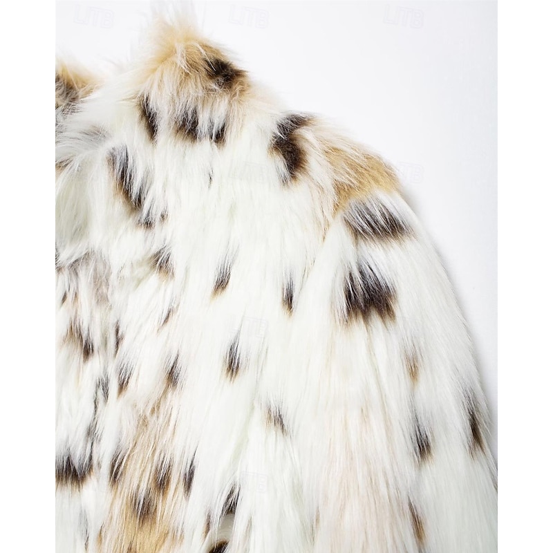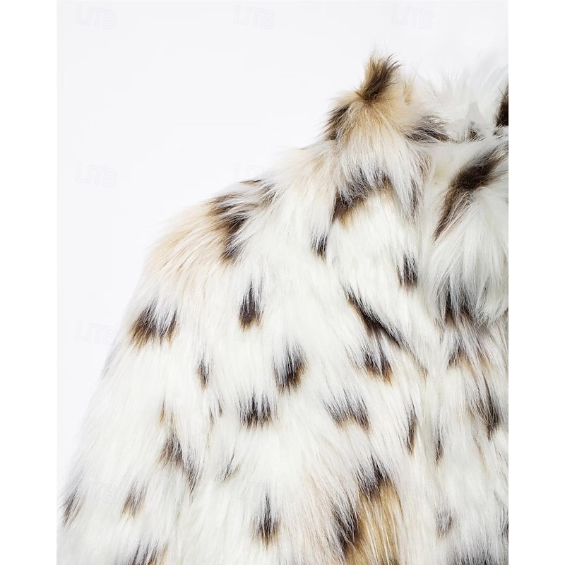 Women's Faux Fur Coat Warm tender Furs & Leathers Casual Plain Vacation Street Daily Wear Going out Regular Stand Collar Regular Fit Long Sleeve Outerwear White Fall Winter