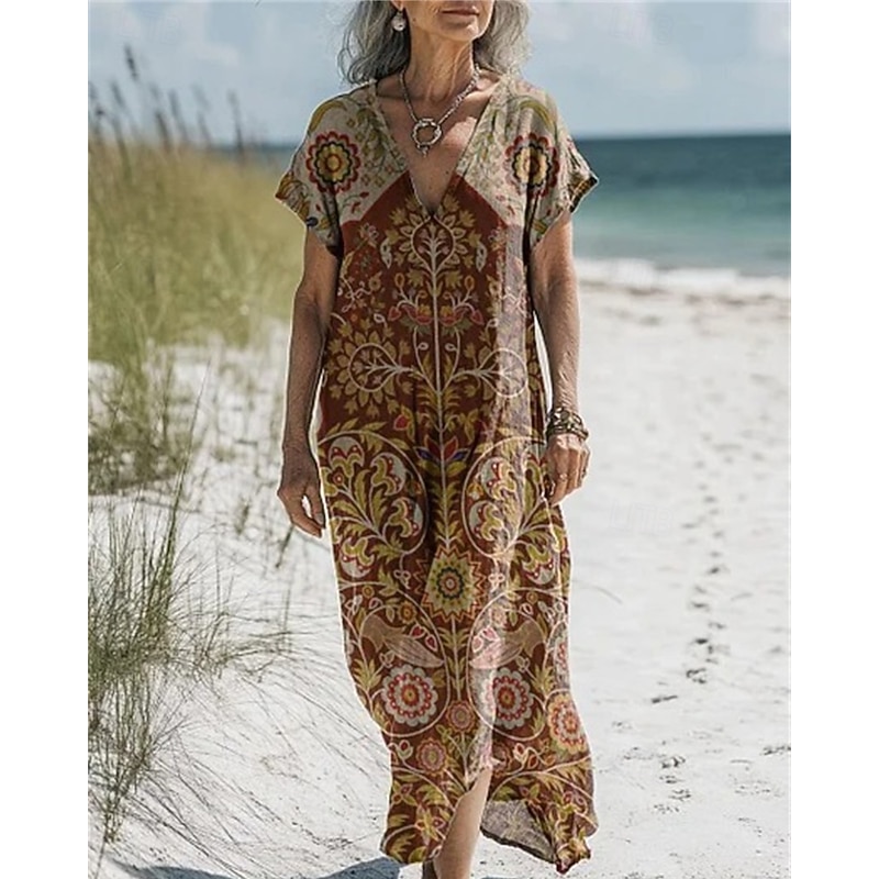 Why Choose Women's Long Dress Maxi Dress Cotton Linen Dresses Casual Dress Boho Dress Western Dress Fashion Outdoor Party Holiday Regular Fit Flower Short Sleeve V Neck Black Blue Purple Brown Summer?