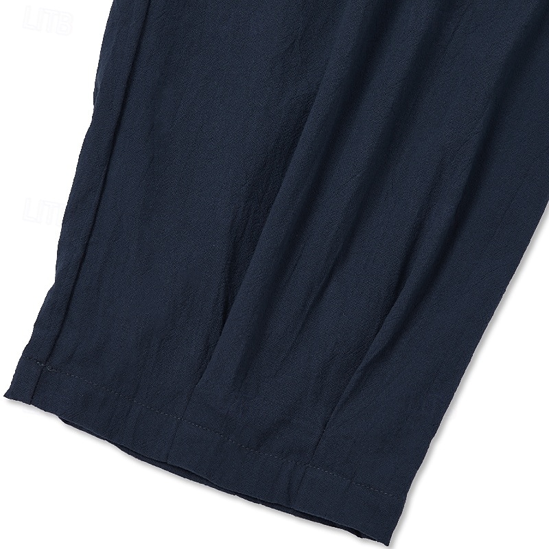 Men's Linen Pants Trousers Summer Pants Baggy Pants Buttons Drawstring Elastic Waist Plain Comfort Breathable Full Length Outdoor Yoga Gym Designer Retro Vintage Red Navy Blue 8