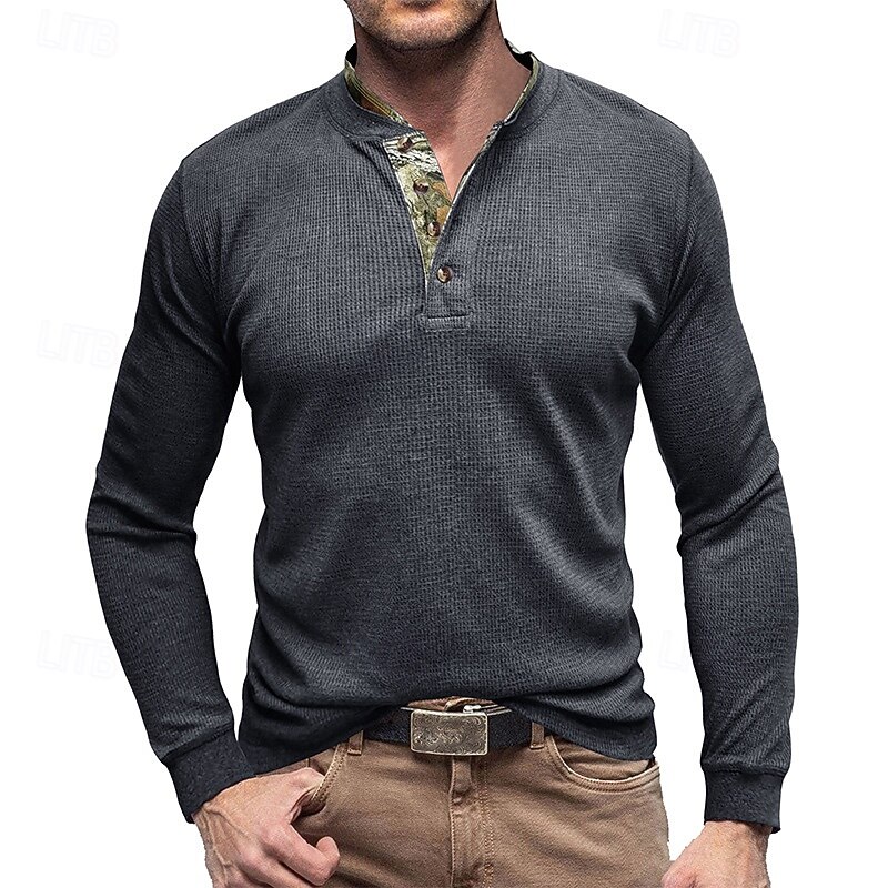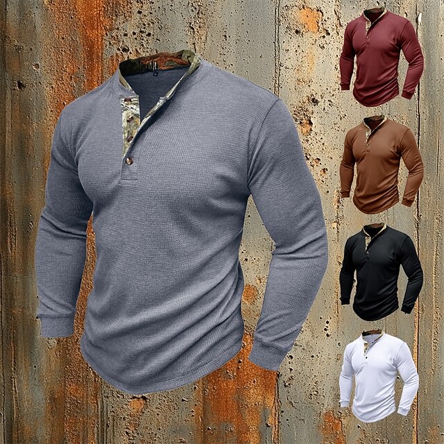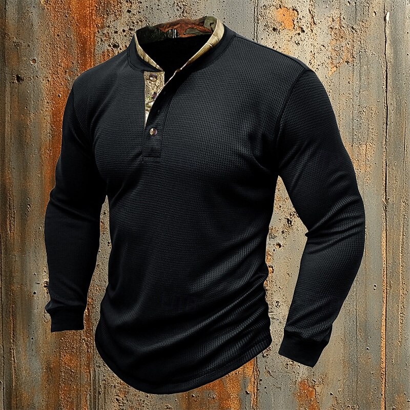 Why Choose Men's Waffle T-shirt T Shirt Henley Shirt Long Sleeve Solid Color Knitwear Daily Buttons Henley Outdoor Causal Casual Spring Fall Spring & Fall Navy Black White Henley T-Shirt?