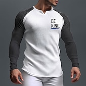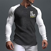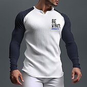 Why Choose Men's Long Sleeve Henley T-Shirt with "BE KIND." Graphic, Waffle Knit Raglan Design for Positive Lifestyle?