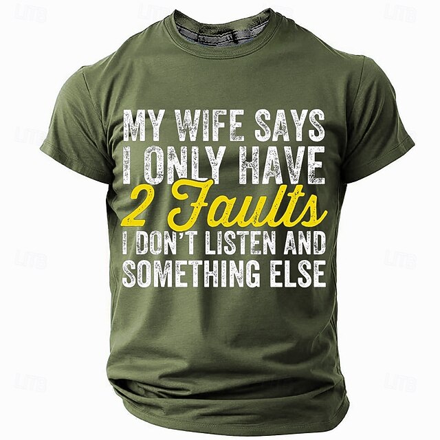Why Choose Mens Funny Graphic Short Sleeve T-Shirt: My Wife Says I Only Have 2 Faults (I Don't Listen & Something Else)?
