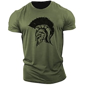 The shirt boasts a striking graphic print of a Spartan helmet on the front, blending ancient warrior aesthetics with modern street fashion. Available in a variety of colors, including green, white, navy blue, gray, and coffee, this tee adds a touch of boldness to any casual ensemble.