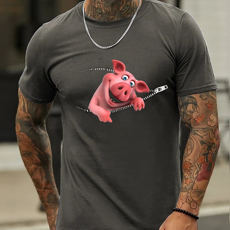This Men's Animal Graphic Prints Pig T Shirt Graphic Tee 100% Cotton Short Sleeve Graphic Shirt Black Navy Blue Blue relaxing Tee Outdoor Street Fashion Designer Clothing combines elegant design with practical functionality. Every detail has been carefully considered to ensure you get the best possible experience. The finest construction means this product will serve you well for years to come.