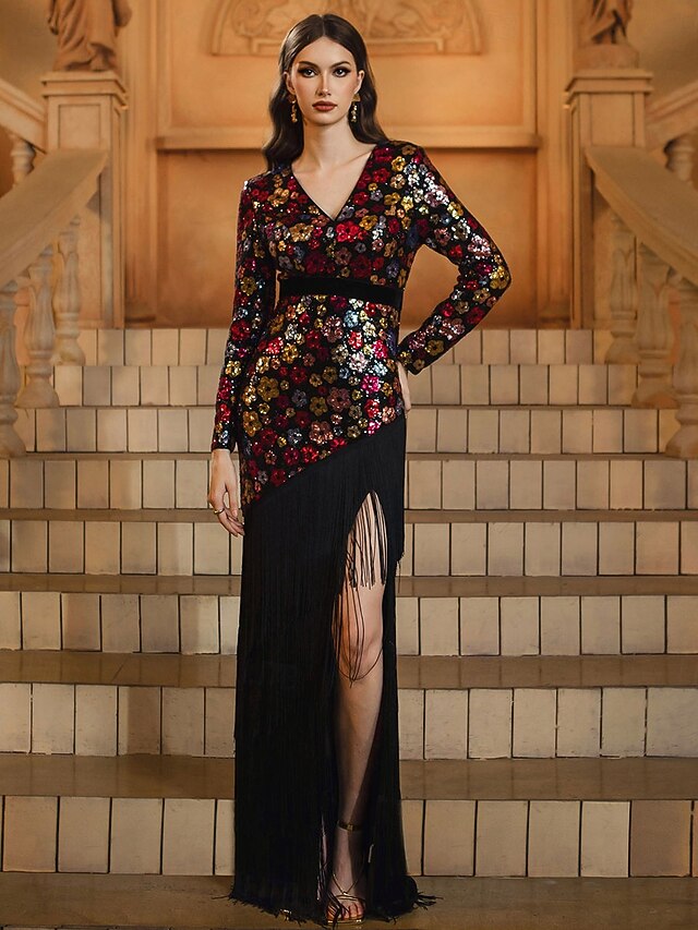 This Mermaid / Trumpet Party Dresses Elegant Dress Formal Wedding Floor Length Long Sleeve V Neck Sequined with Tassel Slit combines elegant design with practical functionality. Every detail has been carefully considered to ensure you get the premier possible experience. The first-class construction means this product will serve you well for years to come.