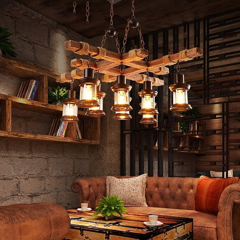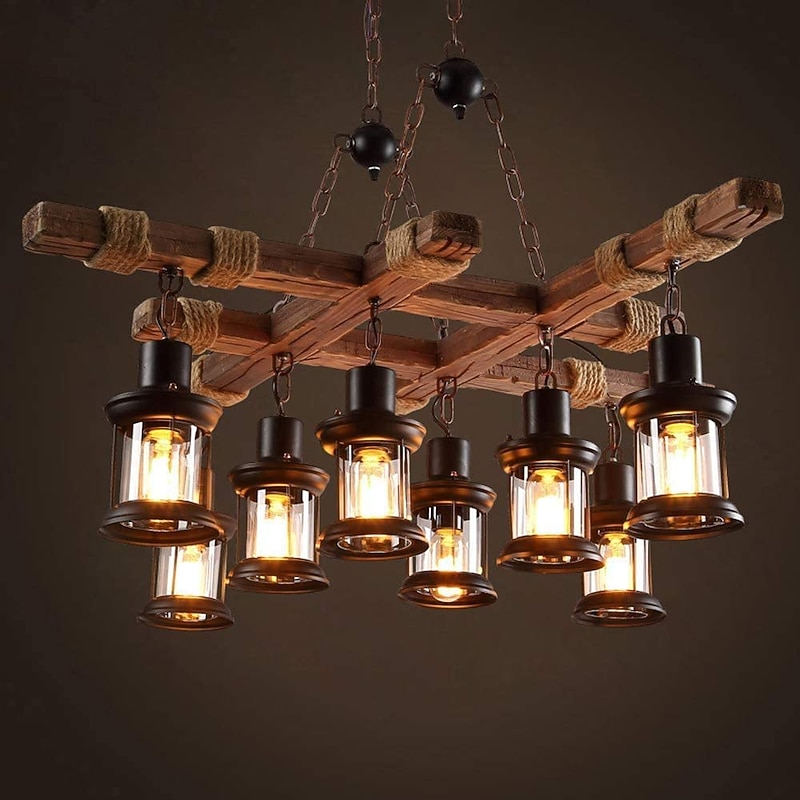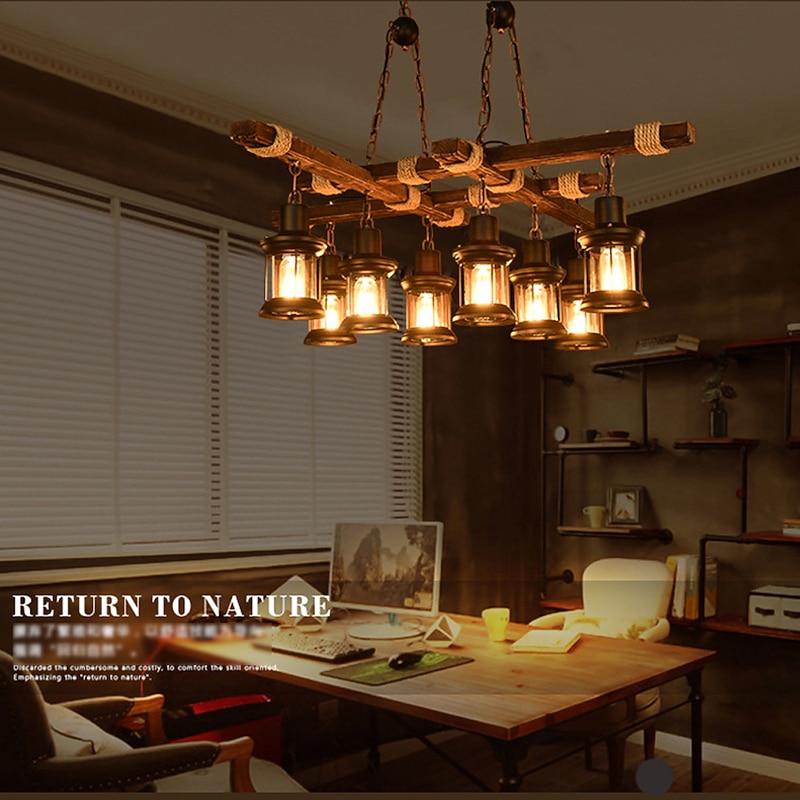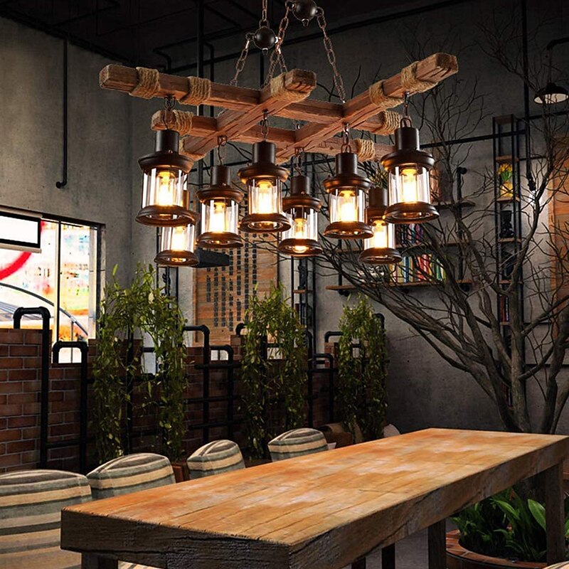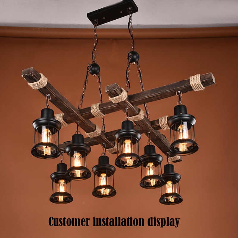 Why Choose LED Pendant Light Vintage Chandelier Wood 8-Light 100cm Industrial Wooden Metal Retro Glass Shade Suitable for Billiard Table Kitchen Island Bar Height Adjustable Chandelier E27 AC220V E26 AC110V?