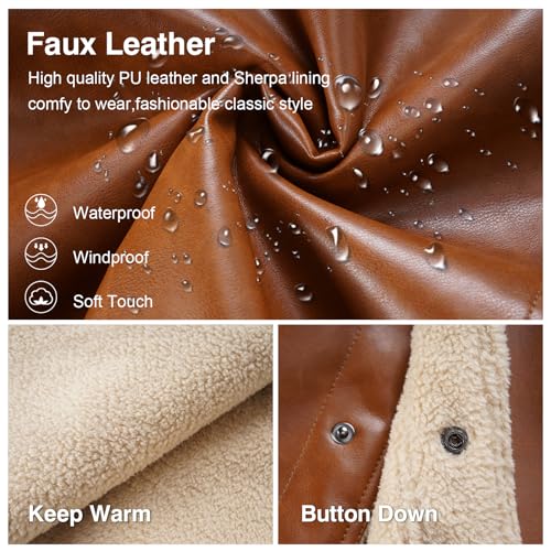 More information about Men's Faux Leather Sherpa Lined Trucker Jacket Collar Winter cozy Coats Multi Pocket