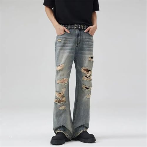 sought-after ! Men's Distressed Ripped Jeans, Hip Hop Motorcycle Denim, Flared Pants, Vintage Hollow Out