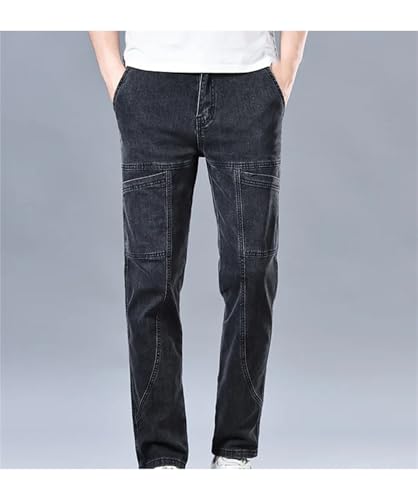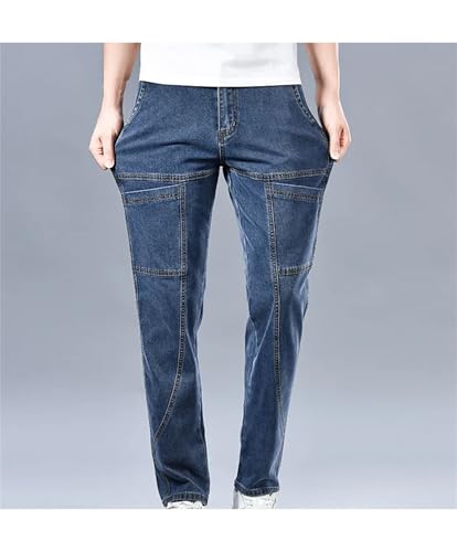 Mnjyihy Men Summerjeans Multi-Pocket Splicing Straight-Leg Denim Trousers Double Knee Denim Cargo Pants