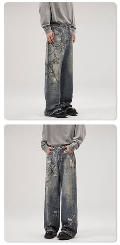Men's Jeans Summer Printed Straight Leg Casual Denim Pants 4