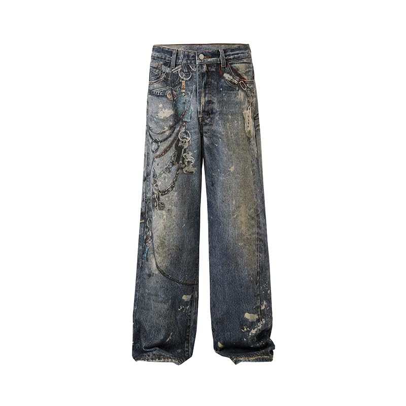 Men's Jeans Summer Printed Straight Leg Casual Denim Pants 1