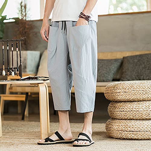 Astellarie Mens Casual Linen Capri Pants Elastic Waist Wide Leg Loose fit Baggy Harem Cotton Shorts Pants for Summer Beach 6