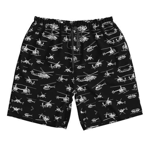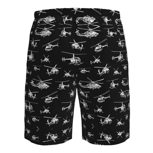 Helicopter Print Men's Beach Shorts for Men, Lightweight Board Shorts for Surf Leisure Swim