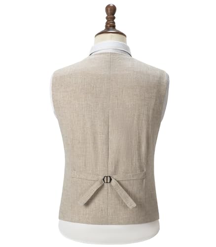 Tuikayoo Men's Summer Linen Vest Suit Waistcoat Casual Vest Regular Fit 4