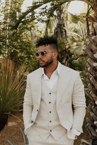 More information about Mens Linen Suit 3 Piece Beach Wedding Casual Formal Summer Suits for Groomsmen Blazer Vest Pants Linen Tuxedo