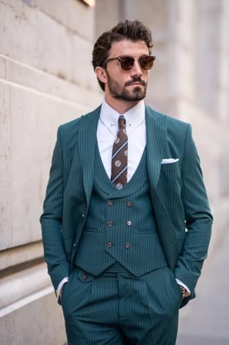 Fabric type: Mens 3 Piece Pinstripe Suits is made of Polyester and ViscoseCare instructions: Dry Clean OnlyOrigin: Imported【Premium Fabric】Mens double breasted pinstripe suit 3 piece is crafted from high-quality polyester blend—smooth, soft, breathable, and warm; fits spring/summer/fall/winter; resists wrinkles for all-day neatness【contemporary Design】Look sharp in this mens pinstripe suit 3 piece complete set (blazer, vest, pants) ; the blazer features a peaked lapel and button closure; the vest adds elegance with its double-breasted design; achieve a modern, handsome, and impeccably look effortlessly【Versatile Occasions】 3 piece pinstripe suits is ideal for both formal and social occasions; like usiness meetings, weddings, parties, proms, graduations, dates, and celebrations; your go-to suit for making a confident impression【Size and Custom】 Please choose your size according to our size chart images; If you are unsure about the suits size, please contact us; if you want to customize it, please send us your height/weight/chest/waist first【Care Tips】Dry clean recommended; hand wash: Perfect for everyday use. excellent materials and excellent craftsmanship ensure long-lasting durability.